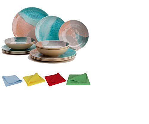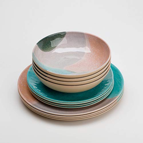 Melamin Bruchfest Campinggeschirr 4 Personen 12 Teile Aus Jeweils 4x Teller Dessertteller Und Schalen Schusseln Spulmaschinengeeignet In Tonoptik Geschirr Essgeschirr Geschirrset Fur Picknick Kinder Amazon De Sport Freizeit