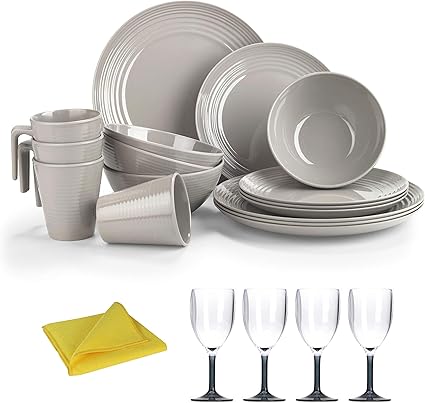 Ein gutes Zelt sollte ausreichend Platz für alle Personen und zusätzlichen Stauraum bieten sowie mit den wichtigsten Camping Geschirr Zubehörartikeln ausgestattet werden. Melamin Camping Geschirr Set 4 Personen Amboss Design 16 Teilig Gläser Wassergläser Weingläser Champagner-Gläser Flûtes Tafelgeschirr Picknick BBQ Kochgeschirr. Müslischalen und Henkelbechern für mehrere Personen genau das Richtige um Frühstück Mittagessen oder Abendbrot rundum zu genießen.