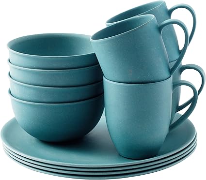 Lekoch 16 Teilige Bambus Camping Geschirr Set Fur Picknick Bbq Grill Fest Camping Party Set Mit Teller Salatteller Suppenschussel Und Becher Fur 4 Personen Blau Amazon De Kuche Haushalt
